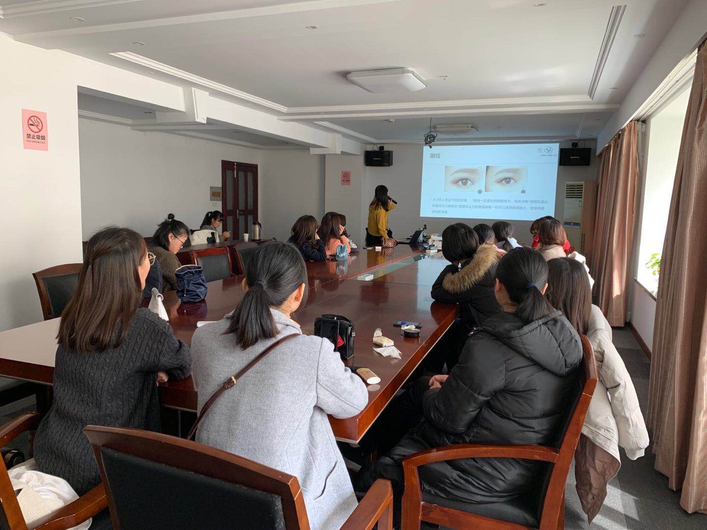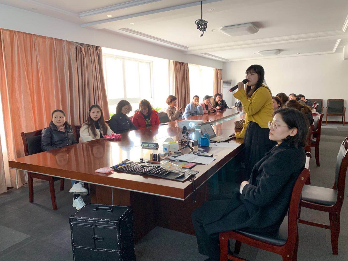 下午一點,活動“云想衣裳花想容”準時開場。公司特邀專業化妝師為全體女員工帶來一場別具一格的化妝培訓小講堂?;瘖y師從化妝基本步驟以及選用化妝品的一些注意事項開始帶領大家逐步深入,并為我們現場演示了“時尚職場妝”、“可愛約會妝”和“熱情夜店妝”等常用妝容,激起了大家的極大興趣。大家紛紛在老師的指導下動手實操,用新學習的技巧去發現和塑造更美的自己。