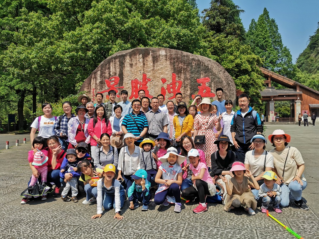 五月的諸暨,山清水秀,陽光正好。揚帆一行人在初散的晨霧中抵達五泄湖口。如詩云“到此已無塵半點,上去更有碧千尋”,隨船渡湖后,沿五洩溪北上,映入眼簾的便是巍峨的山峰,古老的禪寺,幽深的峽谷,繁茂的植被,壯美的瀑布。行至五泄飛瀑的第五泄“東龍湫”下,隊伍便散將開來,或與家人玩水嘻戲,或與同事登山覽勝,在這世外桃源中,揚帆人不分彼此,大人們童心未泯與孩子們玩鬧逗樂,領導們平易近人和員工們閑聊打趣,笑語不斷,其樂融融。