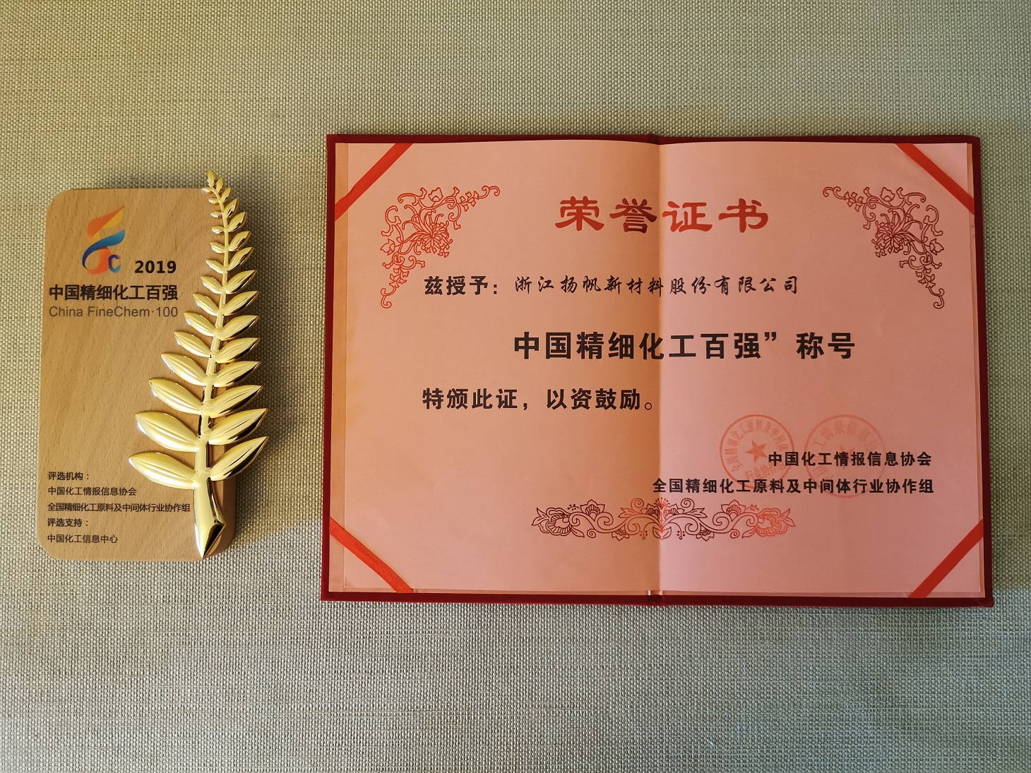 揚帆新材榮登“2019中國精細化工百強榜”