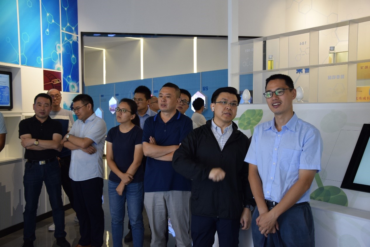 考察團一行先是參觀了企業(yè)發(fā)展(產(chǎn)品)展示廳和黨建展廳。樊彬董事長向各位領導就公司發(fā)展歷程、企業(yè)文化、產(chǎn)品工藝流程、設備裝置、市場前景及黨建工作情況等作了簡要介紹。并對上虞生產(chǎn)基地目前的主要產(chǎn)品、未來發(fā)展規(guī)劃、競爭優(yōu)勢、人才戰(zhàn)略方面及化工制造業(yè)工藝升級工作做了重點匯報。雙方就目前社會、經(jīng)濟形勢下精細化工、新材料、光固化等領域的發(fā)展情況、所遇到的問題及解決方法作了深入的交流。