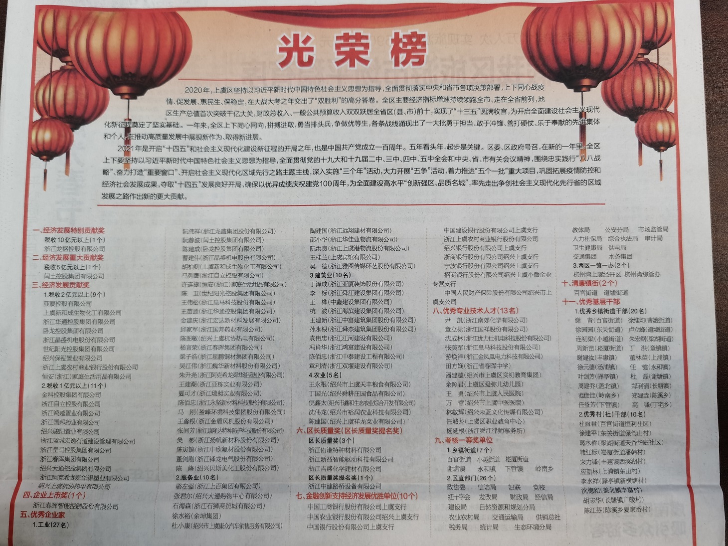近日,上虞區委召開了2021年經濟工作會議。揚帆新材董事長樊彬應邀參加了此次會議,并榮獲“2020年度高質量發展獎(優秀工業企業家)榮譽稱號。