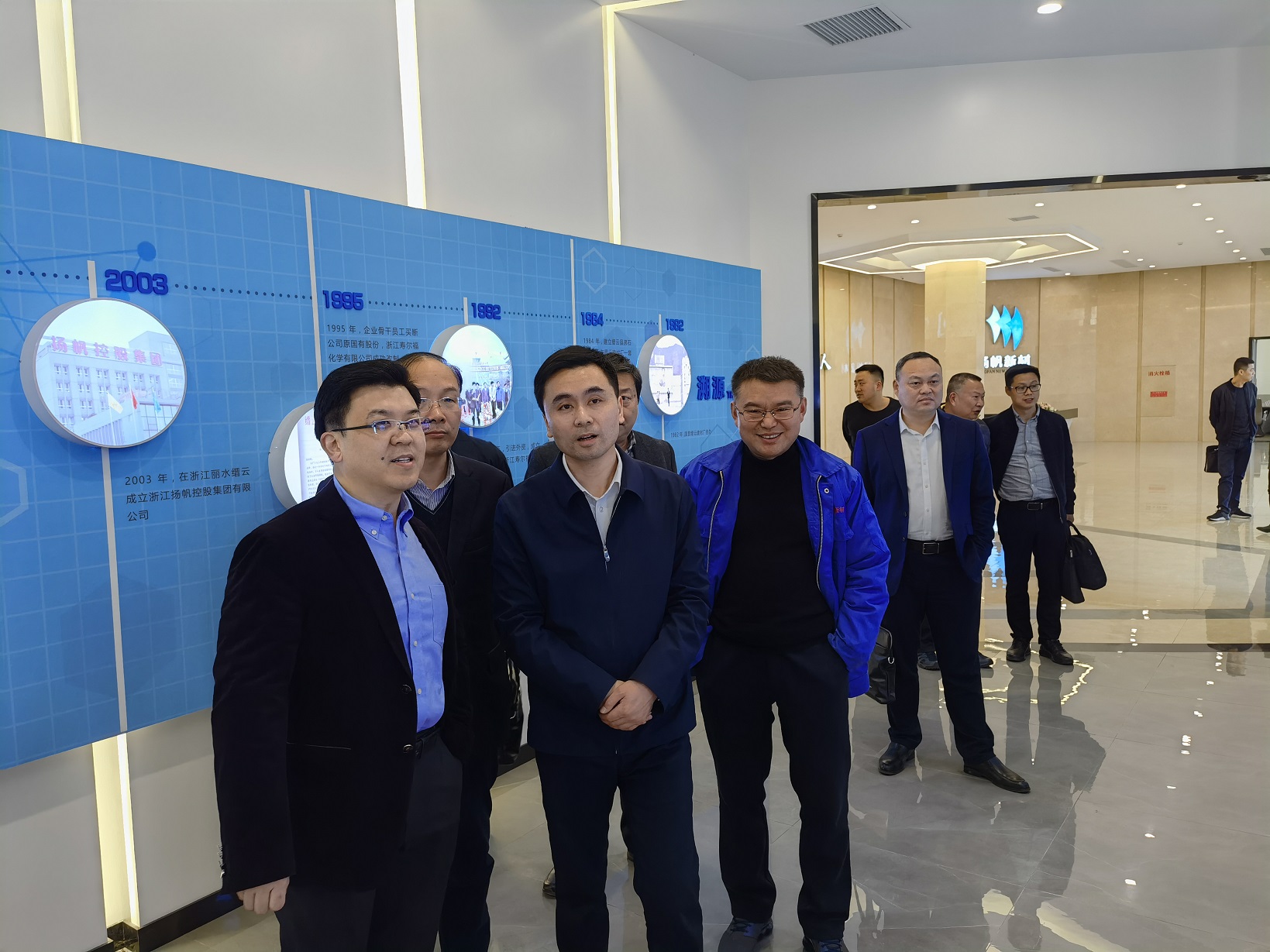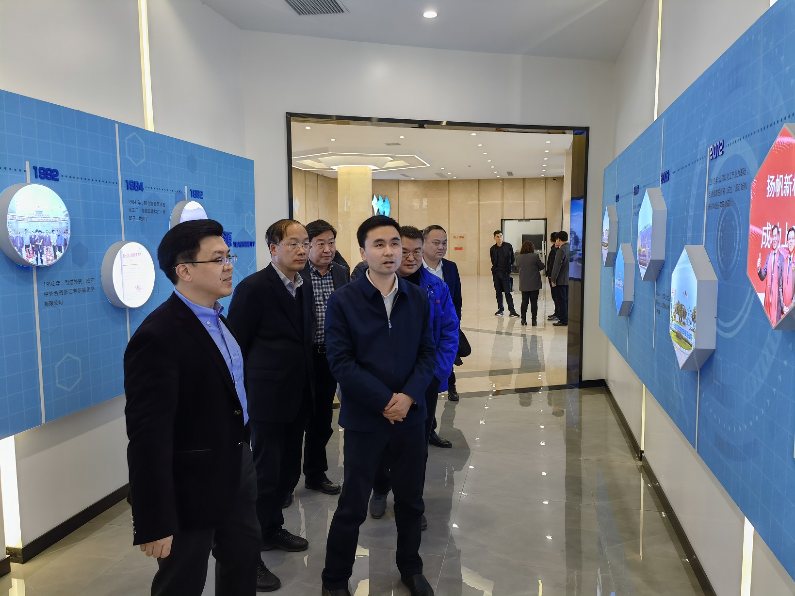 金區長一行在樊董的陪同下參觀了企業發展(產品)展示廳和黨建展廳。