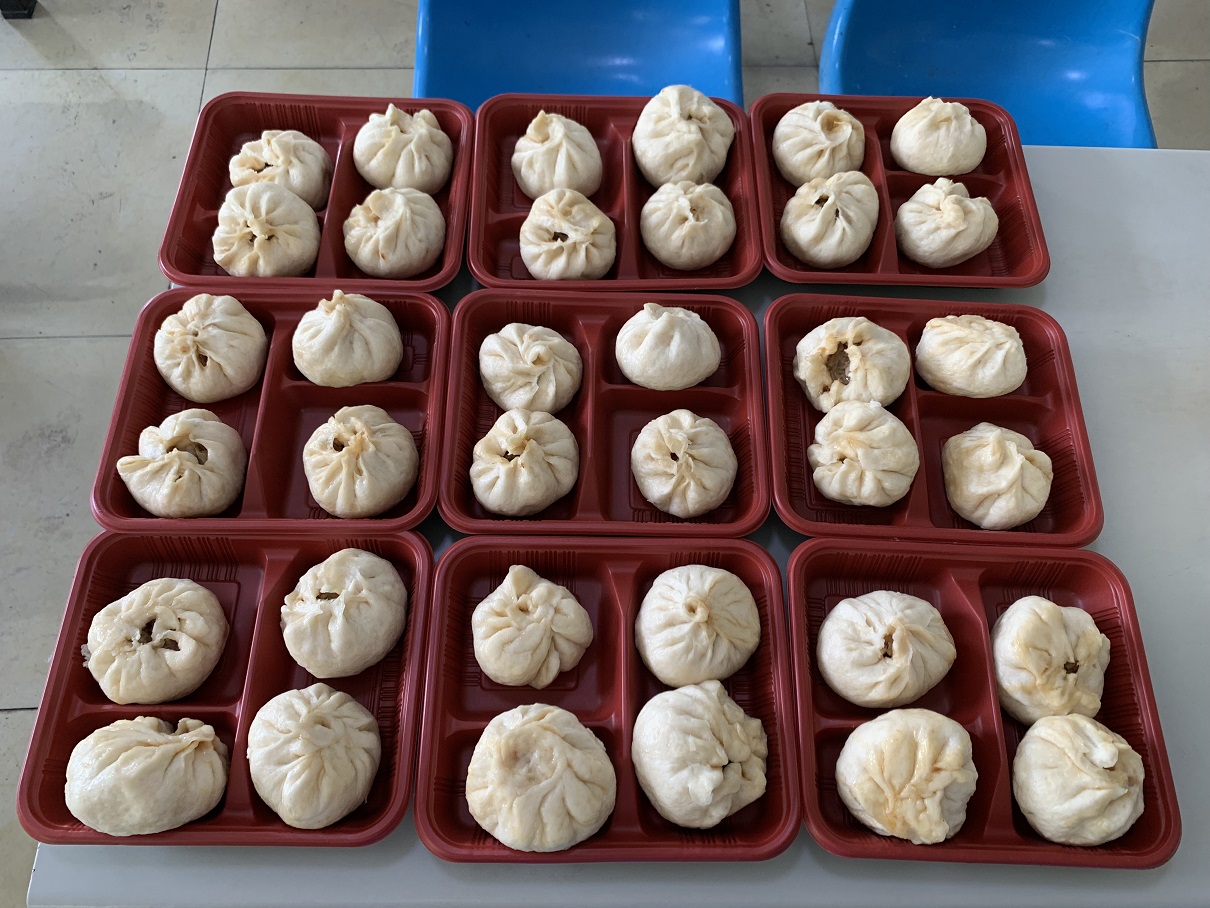 經(jīng)過一個(gè)多小時(shí)的努力,一個(gè)個(gè)美觀飽滿香噴噴的包子終于新鮮出爐了。各車間部門的職工也聞香陸續(xù)來到了食堂,共同分享皮薄餡多的包子和清甜的綠豆湯,鮮香的味道讓大家紛紛贊不絕口。職工們邊吃邊感嘆:好久沒吃過這么好吃的包子了,希望以后能多組織這樣的活動。