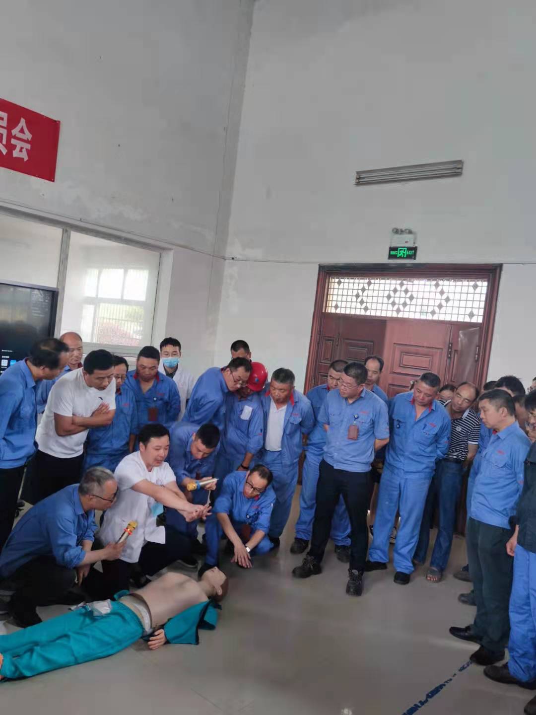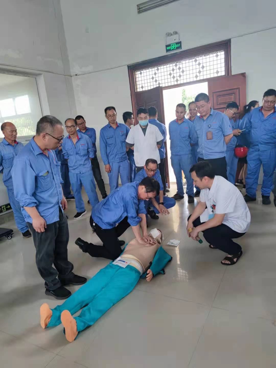 本次大會作為安全生產月動員會,在聽取余總報告后,公司特邀彭澤縣人民醫院重癥醫學科主任姚紅寶為全體員工進行急救知識培訓及心肺復蘇實操演練,并邀請了近10名員工進行了手把手教學、操練。公司領導表示,本次現場教學僅為急救知識培訓的開端,公司將把今天的培訓內容作為安全生產月其中一項活動開展,對全員開展培訓,力求每位員工都掌握正確的心肺復蘇操作方法。