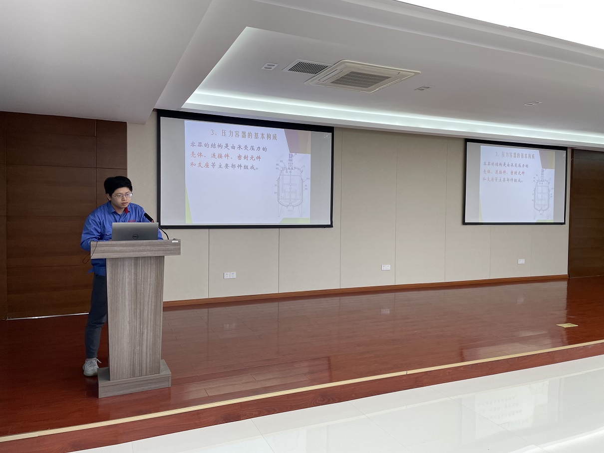 接下來,設(shè)備部陶洋炯為員工進(jìn)行了壓力容器的培訓(xùn),進(jìn)一步增長了全體員工對壓力容器的認(rèn)識、使用、維護(hù)、管理和安全生產(chǎn)專業(yè)知識,也讓專業(yè)從事特種設(shè)備操作人員擰緊了思想上的安全螺絲