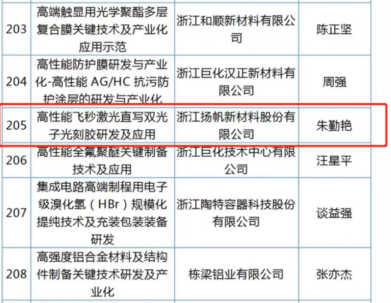 2022年11月15日,浙江省科學(xué)技術(shù)廳發(fā)布《關(guān)于2023年度第一批“尖兵”“領(lǐng)雁”研發(fā)攻關(guān)計(jì)劃項(xiàng)目立項(xiàng)的公示》,揚(yáng)帆新材朱勤艷博士主持的項(xiàng)目“高性能飛秒激光直寫雙光子光刻膠研發(fā)及應(yīng)用”成功入列。這是今年以來公司研發(fā)工作取得的又一可喜進(jìn)展。同時(shí),公司得到了紹興市上虞區(qū)人才發(fā)展大會(huì)的表彰并榮獲重才愛才“金梧桐獎(jiǎng)”。