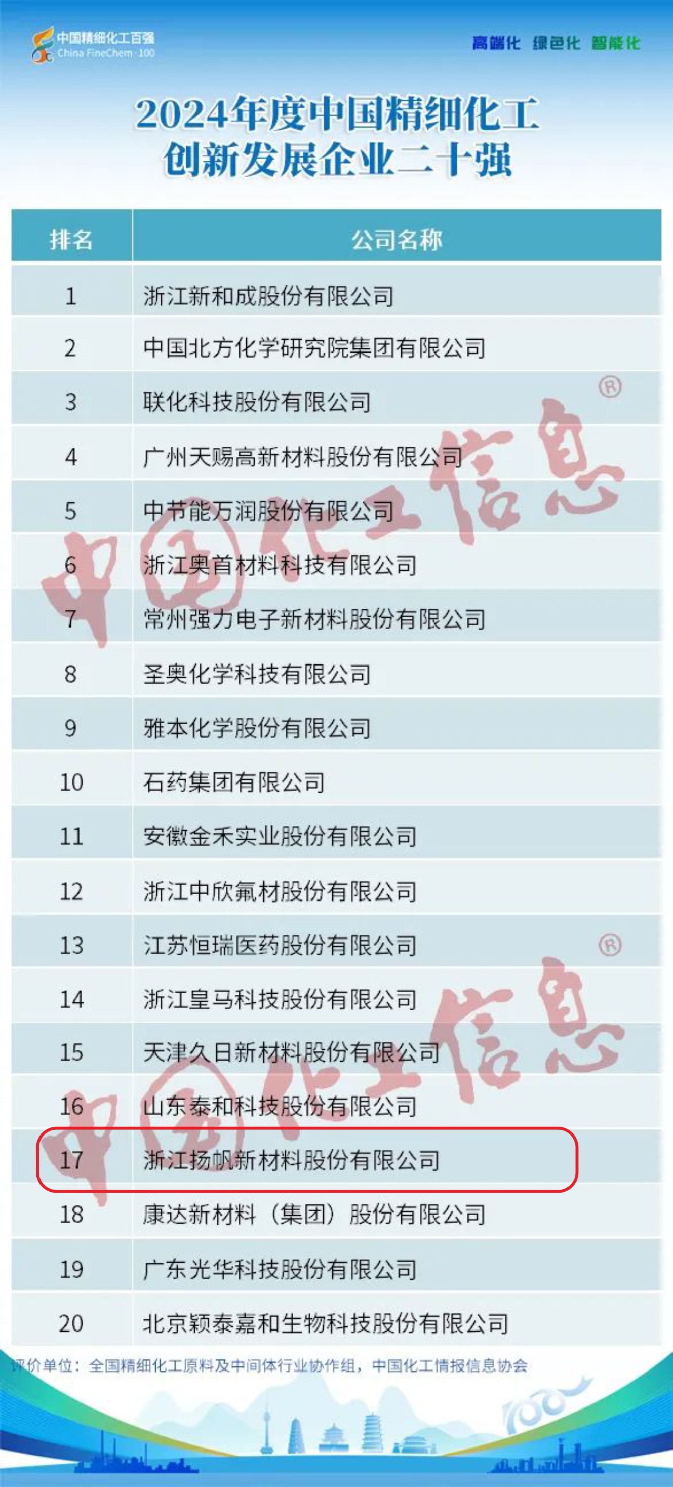 此外,公司榮登“2024年度中國精細化工創(chuàng)新發(fā)展企業(yè)二十強”,位居17位。