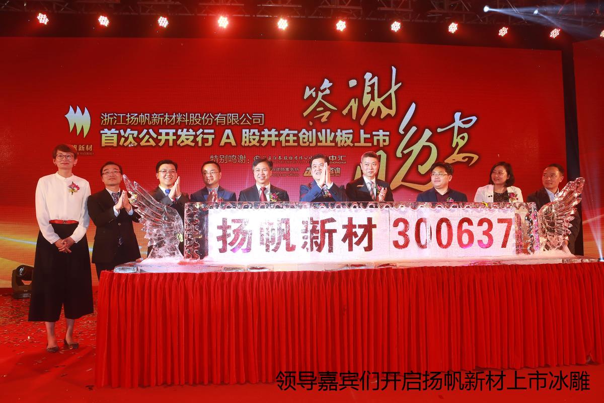 熱烈祝賀浙江揚帆新材料股份有限公司于2017年04月12日在中國創業板成功上市,簡稱“揚帆新材”,股票代碼:300637。